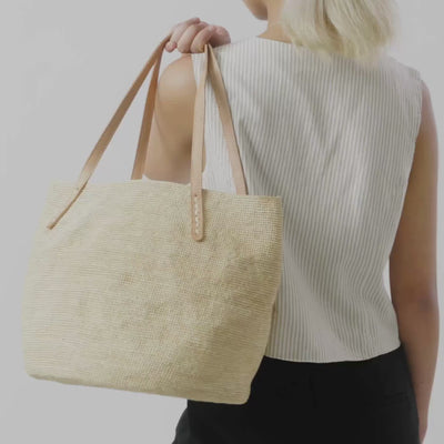 MATERIAL 100% Raffia, Genuine leather handles