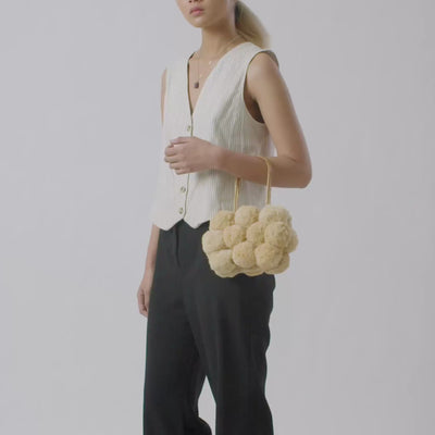 MIMOSA is raffia mini bag designed for maximum impact. With its soft, fluffy texture and playful style, it’s both a statement accessory and a novelty piece for carrying your bare essentials. Crafted sustainably in Madagascar, MIMOSA blends artisanal weaving with contemporary fashion for an eye-catching, eco-conscious design.